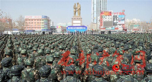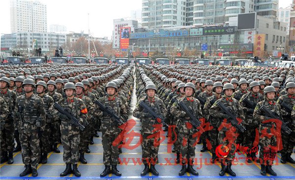 2月27日上午,新疆維吾爾自治區(qū)在烏魯木齊舉行反恐維穩(wěn)誓師大會(huì)。