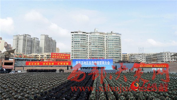 自治區(qū)反恐維穩(wěn)誓師大會(huì)現(xiàn)場(chǎng)。