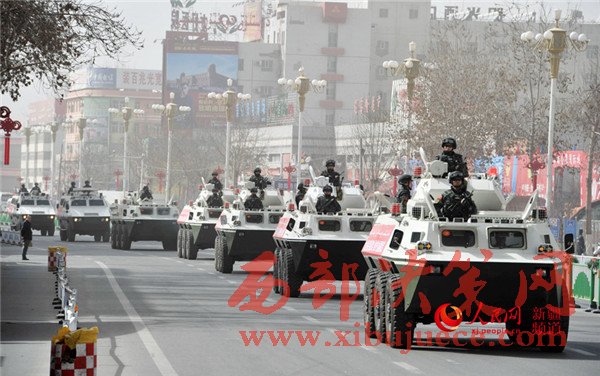 隨著一聲令下,戰(zhàn)士們登上戰(zhàn)車,警燈閃爍,警笛齊鳴,氣勢(shì)磅礴。一支威武之師、鋼鐵之師、正義之師吹響沖鋒號(hào),在烏魯木齊市主要街道和重點(diǎn)部位進(jìn)行武裝巡邏。
