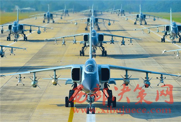 南海艦隊航空兵某飛行團“飛豹”大機群在跑道上滑行(資料照片)。