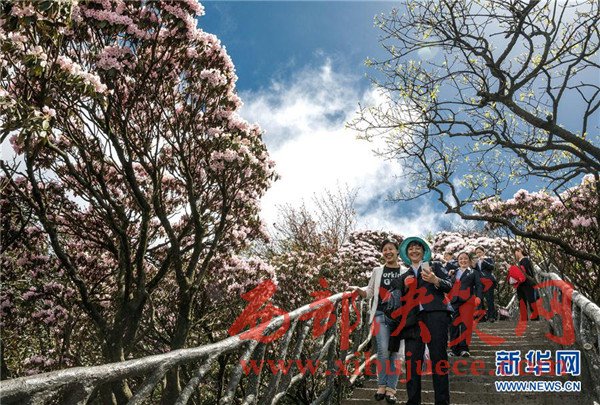 近期,國(guó)家級(jí)風(fēng)景名勝區(qū)重慶金佛山的杜鵑花競(jìng)相盛開(kāi),吸引眾多游客前往觀賞。