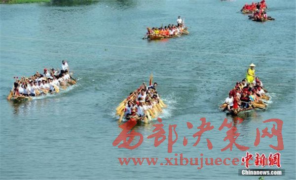 2016年6月9日,農(nóng)歷五月初五端午節(jié),極具中華傳統(tǒng)文化魅力的賽龍舟在貴州省岑鞏縣龍?zhí)镦?zhèn)舉行,共度端午節(jié)。
