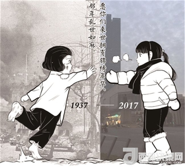 “那年亂世如麻,愿你們來世擁有錦繡年華”。昨日,這句話被許多網(wǎng)友轉(zhuǎn)發(fā)提及,這句話來自于一張漫畫圖,圖中兩名分別來自1937年和2017年的女孩隔空相對,一人身邊戰(zhàn)火紛飛,一人身處和平現(xiàn)代。這幅圖的作者朱彥告訴記者,該圖創(chuàng)作于去年12月,今年有網(wǎng)友把原圖中的2016年換成了2017年,之所以想要畫這張圖,是因為想讓大家不要忘記這段歷史,而網(wǎng)友的大量關(guān)注在他們意料之外,“說明我們想表達的情緒網(wǎng)友感受到了。”