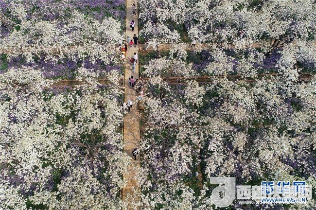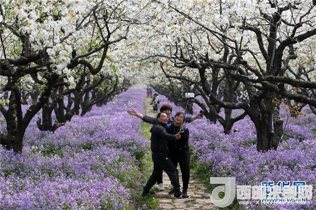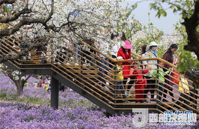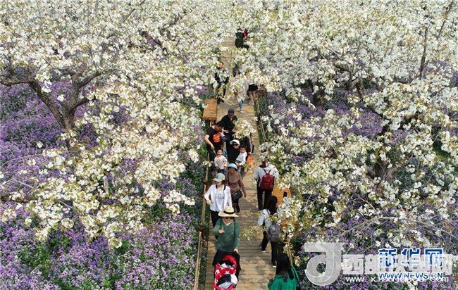 清明時(shí)節(jié),在江蘇省宿遷市三臺(tái)山森林公園梨香滿園景區(qū),白色的梨花和紫色的二月蘭爭(zhēng)相綻放,吸引眾多游客前來踏青賞花。 新華社發(fā)(周國強(qiáng) 攝)