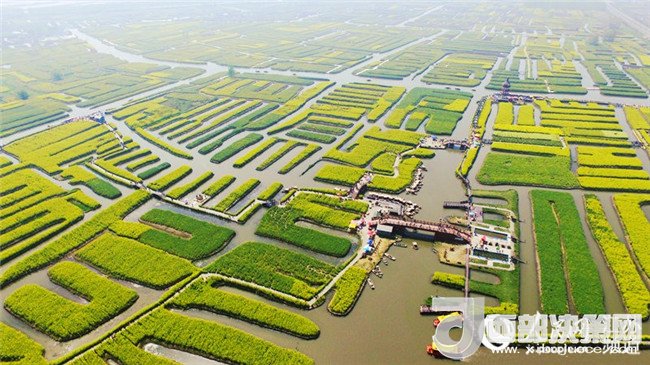 泰州興化的油菜花,以千島樣式形成的垛田景觀享譽全國。傳說垛田是當(dāng)年泰州知州岳飛大戰(zhàn)金兵擺設(shè)的八卦陣,每當(dāng)清明前后,油菜花開,藍(lán)天、碧水、“金島”織就了“河有萬灣多碧水,田無一垛不黃花”的奇麗畫卷,吸引了眾多海內(nèi)外游客前來觀光。(耿志超)