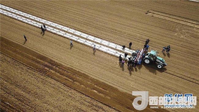 在新疆庫車縣牙哈鎮(zhèn)的一處棉田,“智能拖拉機”在進行播種作業(yè)(3月23日無人機拍攝)。國家統(tǒng)計局4月17日發(fā)布數(shù)據(jù),初步核算,一季度國內(nèi)生產(chǎn)總值198783億元,按可比價格計算,同比增長6.8%。 新華社記者 胡虎虎 攝