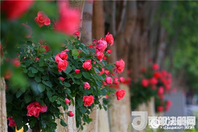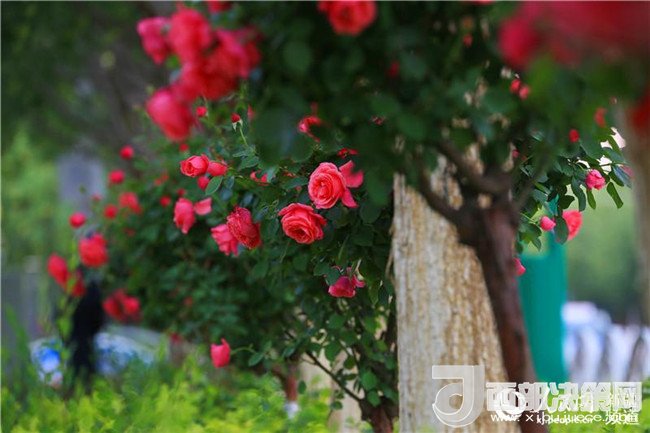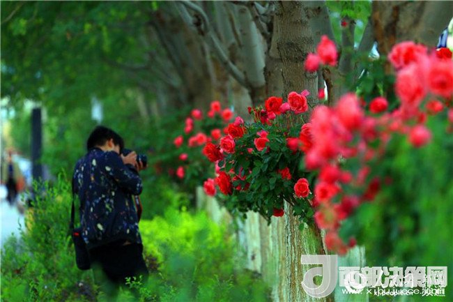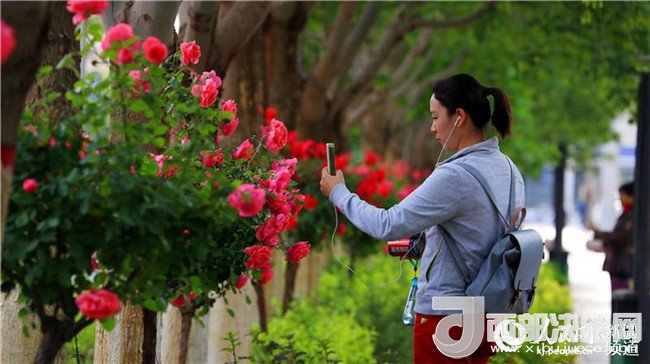 漫步在友好路兩側(cè)的人行道上,青青垂柳遮住了太陽(yáng)的熾熱,垂柳上的許愿帶隨風(fēng)飄蕩,五顏六色的玫瑰花光彩奪目,空氣中都是夏天的味道。這里的人們都已經(jīng)換上的夏天的衣服,小孩子在老人和父母的陪伴下在這里納涼賞花,過(guò)往的路人時(shí)不時(shí)拿出手機(jī)和玫瑰花拍照留影。(李靖海、吳雙、胡國(guó)凱)