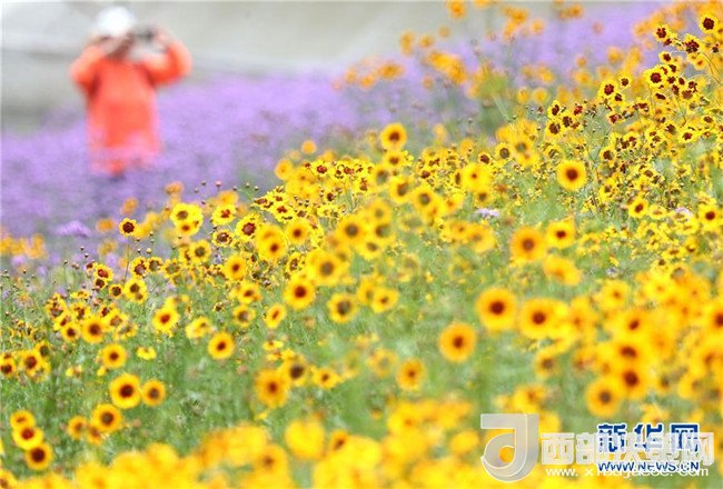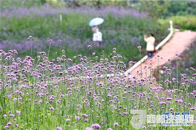 時下,廣西南寧市良慶區(qū)那馬鎮(zhèn)壇良村壇板坡100多畝馬鞭草和非洲雛菊競相盛放,田園風(fēng)光吸引了不少游客前來觀賞。 新華社記者 周華 攝