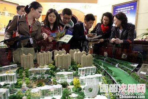 資料圖:購房人在樓盤看沙盤并咨詢售樓工作人員。中新社發(fā) 湯彥俊 攝
