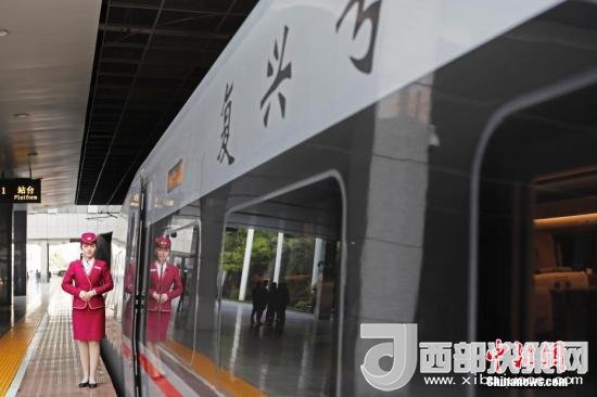 列車員在“復(fù)興號”列車旁迎接旅客的到來。 中新社記者 殷立勤 攝