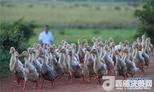 ??谑协偵絽^(qū)曲溪濕地,當?shù)卮迕褚揽筐B(yǎng)鴨脫貧致富(5月30日攝)。