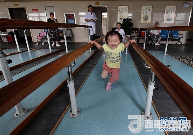 5月29日,笑笑在康復(fù)室里借助器械練習(xí)單腿站立和跳躍,增強(qiáng)腿部肌肉力量和協(xié)調(diào)性。