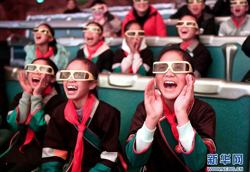 在廣西柳州市景行小學(xué)柳東校區(qū),來自三江侗族自治縣和融安縣大山里的留守兒童觀看3D動(dòng)畫片(1月4日攝)。當(dāng)日,柳州市舉行關(guān)愛留守兒童城市圓夢(mèng)活動(dòng)。新華社發(fā)(黎寒池 攝)