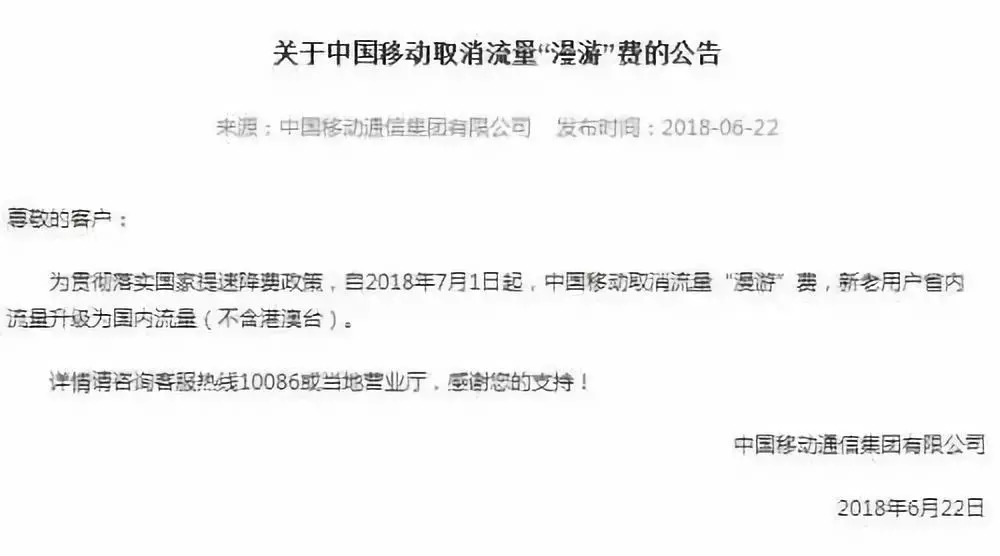 6月22日,中國移動、中國聯(lián)通和中國電信先后宣布自7月1日起取消流量“漫游”費,手機(jī)用戶省內(nèi)流量升級為國內(nèi)流量(不含港澳臺)。