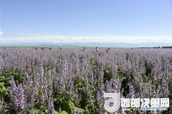 8月1日,游客在新疆昭蘇縣一處香紫蘇花海景區(qū)游玩。 新華社記者胡虎虎攝