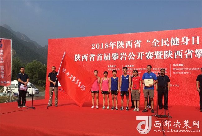 隨后陜西省登山協(xié)會(huì)主席陳錚向省攀巖集訓(xùn)隊(duì)教練組代表邱洪樹(shù)授“陜西省攀巖集訓(xùn)隊(duì)”隊(duì)旗,并頒發(fā)聘書(shū)。陜西省社會(huì)體育管理中心主任田凱、渭南市體育局副局長(zhǎng)王曉燕、陜西華山旅游集團(tuán)有限公司副總經(jīng)理趙江峰同志共同為“陜西省攀巖訓(xùn)練基地”揭牌。