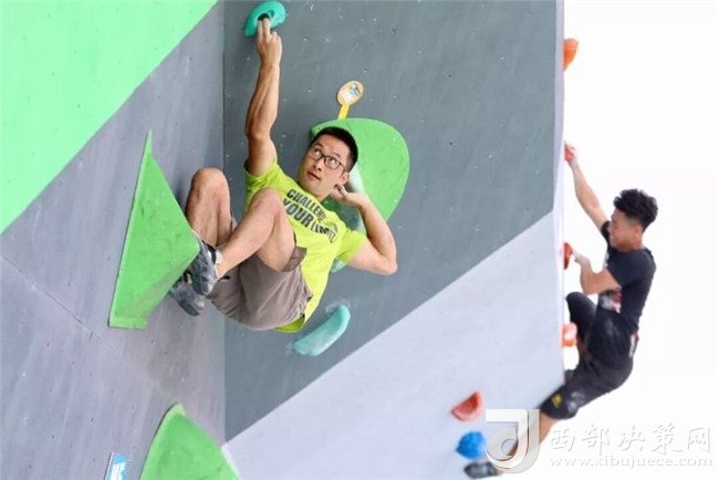 專業(yè)攀巖選手與資深攀巖愛(ài)好者在難度賽道進(jìn)行表演賽