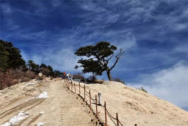 魏晉南北朝時(shí),還沒有通向華山峰頂?shù)牡缆贰V钡教瞥?,隨著道教興盛,道徒開始居山建觀逐漸在北坡沿溪谷而上開鑿了一條險(xiǎn)道,形成了"自古華山一條路"。