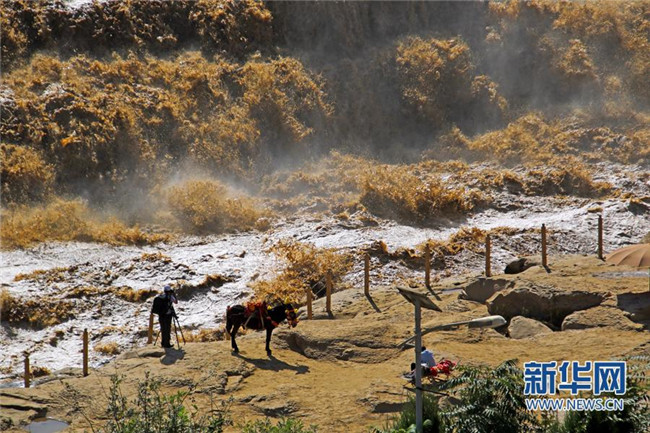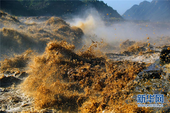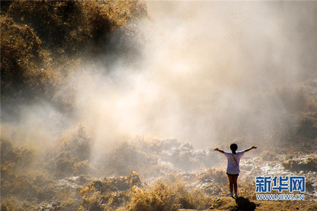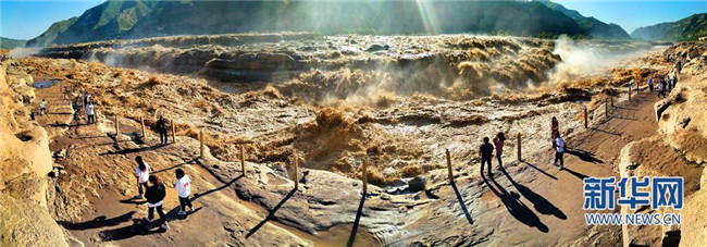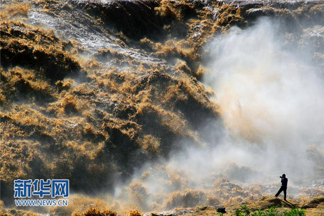 入秋以來(lái),受上游降雨影響,陜西宜川黃河壺口瀑布水量大增,出現(xiàn)“山飛海立”、“旱天鳴雷”的自然景觀,引來(lái)眾多游客和攝影愛好者。(趙潔)