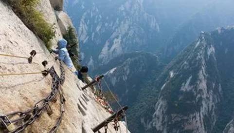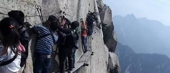 但是和這個(gè)僅30厘米寬的懸空棧道相比,玻璃棧道在驚險(xiǎn)刺激程度還是略遜一籌,不知道勇敢的你是否有膽量登山一試呢?