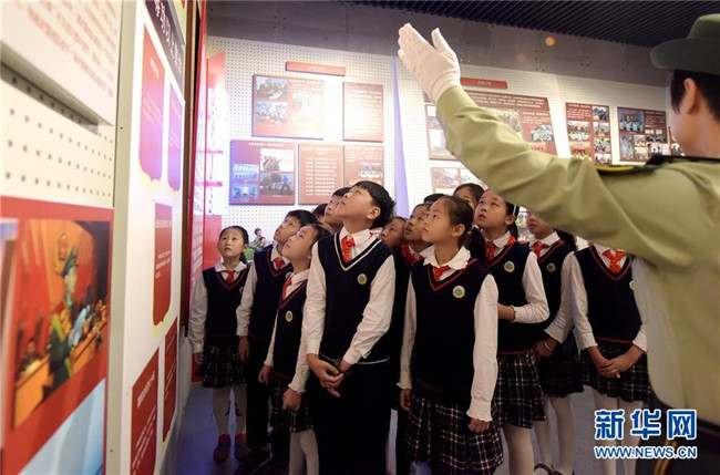 10月9日,少先隊(duì)員們?cè)谖渚不湛傟?duì)合肥支隊(duì)隊(duì)史館參觀(guān)。