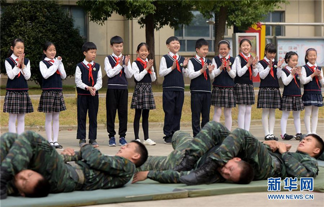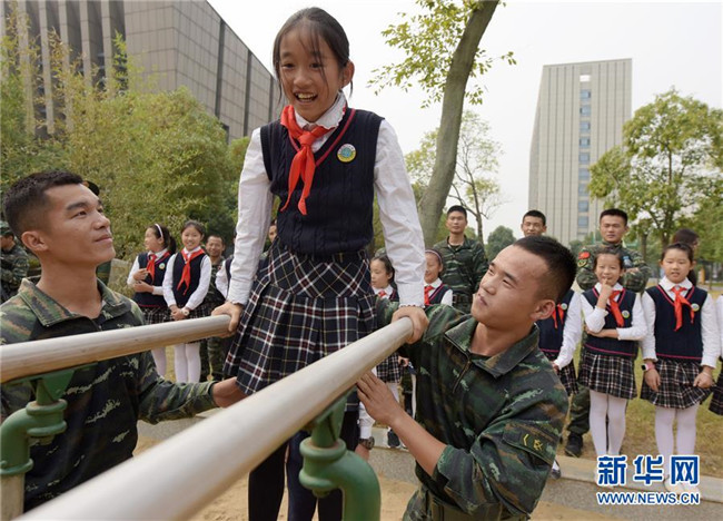 10月9日,少先隊(duì)員們?cè)谖渚不湛傟?duì)合肥支隊(duì)體驗(yàn)官兵訓(xùn)練。