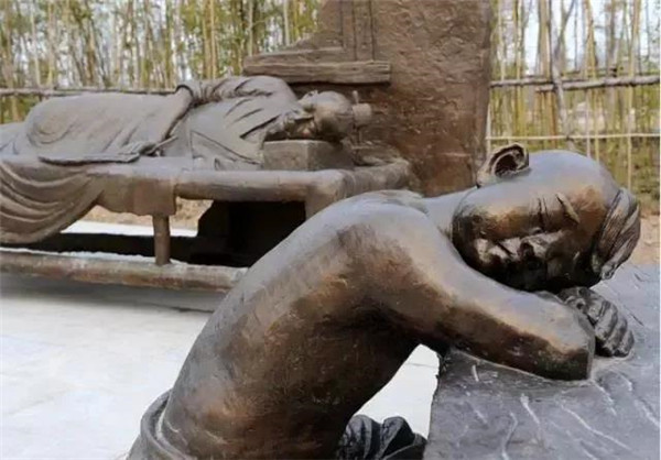 庾黔婁,南齊高士,任孱陵縣令。赴任不滿十天,忽覺心驚汗流,預(yù)感家中有事,當(dāng)即辭官返鄉(xiāng)?;氐郊抑?,知父親已病重兩日。醫(yī)生囑咐說:“要知道病情吉兇,只要嘗一嘗病人糞便的味道,味苦就好。” 黔婁于是就去嘗父親的糞便,發(fā)現(xiàn)味甜,內(nèi)心十分憂慮,夜里跪拜北斗星,乞求以身代父去死。幾天后父親死去,黔婁安葬了父親,并守制三年。