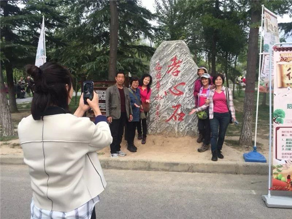 在節(jié)日的氛圍里,游客熱情高漲,爭先恐后地與“孝心石”合影留念,以此表達(dá)自己對(duì)父母的親切祝福。