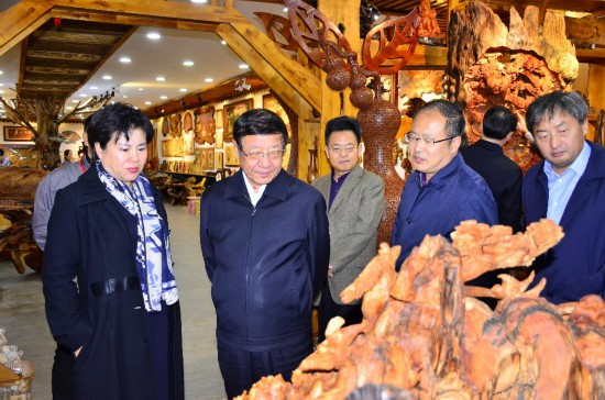 張建龍首先來到烏馬河木藝文化小鎮(zhèn),詳細(xì)了解小鎮(zhèn)規(guī)劃布局和建設(shè)發(fā)展情況,通過觀看小鎮(zhèn)宣傳片,現(xiàn)場參觀小鎮(zhèn)服務(wù)中心、木藝產(chǎn)品店,對伊春市木藝文化產(chǎn)業(yè)發(fā)展表示高度肯定。他指出要繼續(xù)突出原生態(tài)特色,加強(qiáng)創(chuàng)新創(chuàng)意設(shè)計(jì),滿足人民群眾對林業(yè)產(chǎn)品多樣化的需求。走進(jìn)美江木藝公司,就如同走進(jìn)了藝術(shù)的殿堂,制作精良的木拼畫、惟妙惟肖的根雕、造型別致的樹榴工藝產(chǎn)品,一件件精美的木制工藝品,令人目不暇接。張建龍仔細(xì)觀賞這些木制產(chǎn)品,向企業(yè)負(fù)責(zé)同志詳細(xì)了解產(chǎn)品創(chuàng)意設(shè)計(jì)和市場銷售等情況。勉勵企業(yè)要再接再厲,繼續(xù)做好產(chǎn)品研發(fā),全面提升工藝水平,創(chuàng)造出更多更好的生態(tài)特色產(chǎn)品,進(jìn)一步增強(qiáng)林業(yè)發(fā)展的活力與動力。