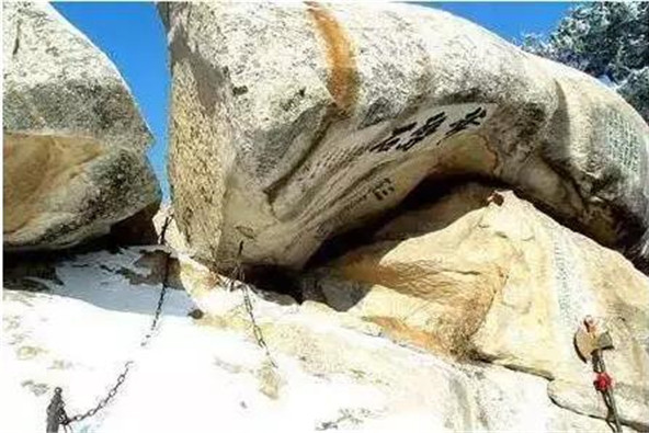 華山文化可謂博大精深,這些鐫刻在神山圣水之間的文字,他們是一個(gè)符號,更是一份歷史的活化石。有時(shí)雖寥寥幾筆,卻是一個(gè)時(shí)代的銘記,“智取華山”雖然只有四個(gè)字,但是它卻讓后人牢牢記住了在這座山上曾經(jīng)發(fā)生的英雄故事。這四個(gè)字是劉吉堯2004年來的時(shí)候題的詞,劉吉堯是全國特級戰(zhàn)斗英雄,他在近90歲時(shí)還經(jīng)常華山,這就是智取華山路離北峰最近的那一段路。