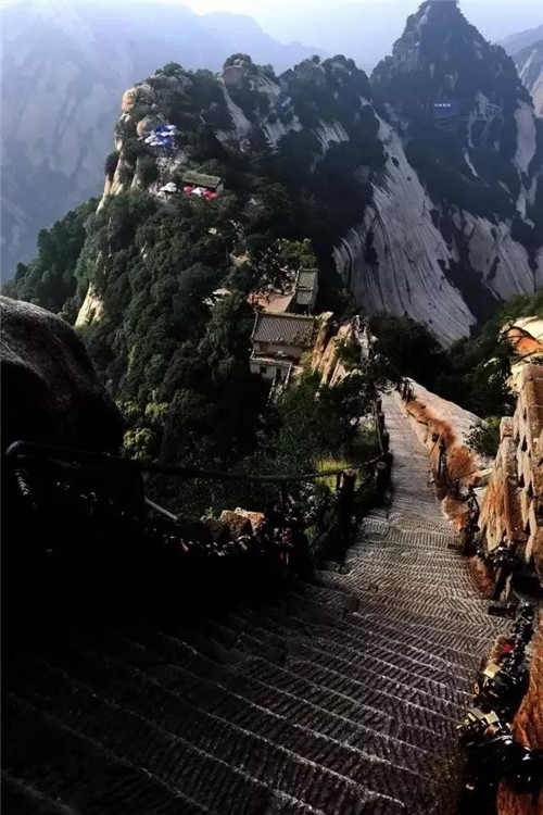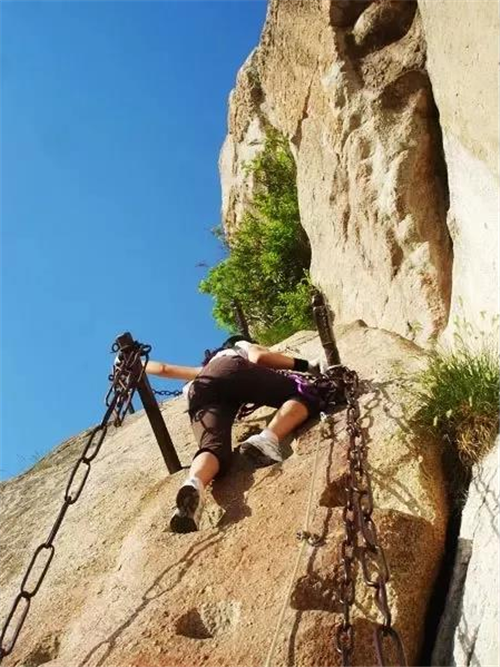 華山自古被稱為“奇險天下第一山”,華山的“長空棧道”堪稱全球十大最恐怖的懸崖步道之一,懸于刀削斧劈的絕壁之上,下臨萬丈谷底深淵,上冠景云,下通地脈,巍然磅礴,奇險峻絕,大氣壯觀!