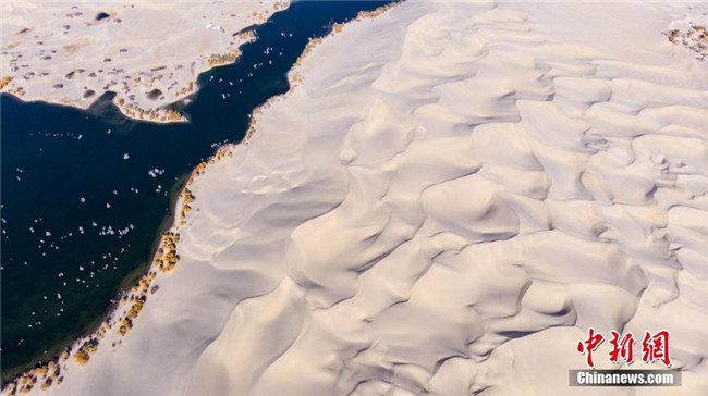 羅布湖與沙漠交匯處猶如入海口。李飛 攝