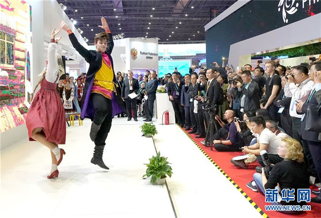 11月6日,俄羅斯演員在首屆中國國際進口博覽會俄羅斯展區(qū)表演舞蹈。新華社記者陳建力攝