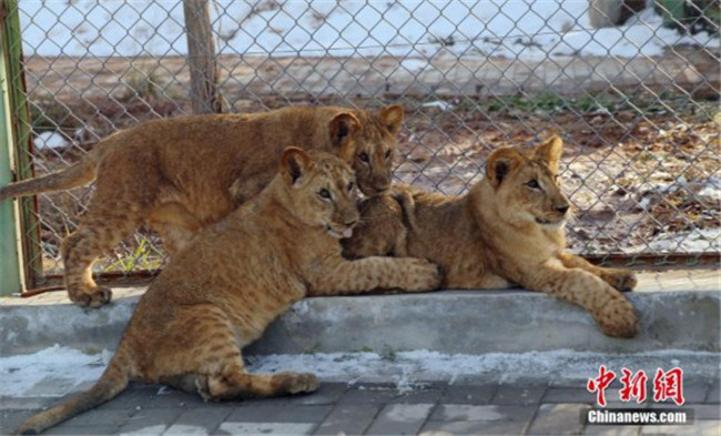 11月13日,西寧,小非洲獅曬太陽。近日,青藏高原野生動物園對外表示,該園繁育成活三只非洲獅。據(jù)了解,三只非洲獅寶分別出生于2018年5月9日和5月15日,均為雌性,其中一對為雙胞胎,目前三只“獅寶”已能自行捕食,體重均達到20公斤左右。此次是該物種在青藏高原誕生并育活的最好“成績”,就目前觀察情況來看,此物種已適應青藏高原氣候。中新社記者 馬銘言 攝
