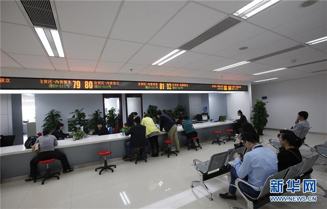 這是設(shè)在上海張江高科技園區(qū)管理委員會(huì)大樓內(nèi)的中國(上海)自由貿(mào)易試驗(yàn)區(qū)張江行政服務(wù)中心辦事大廳一角(2015年3月31日攝)。新華社記者方喆攝