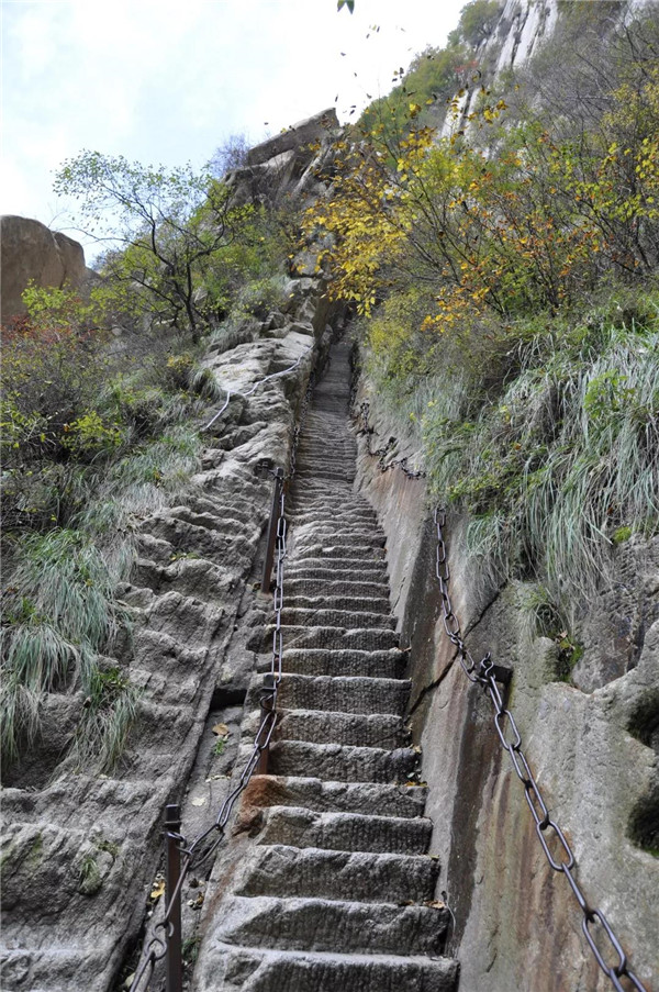 接下來你將會挑戰(zhàn)——華山五大險關。這五道險關分別是千尺幢、百尺峽、老君犁溝、擦耳崖和蒼龍嶺。