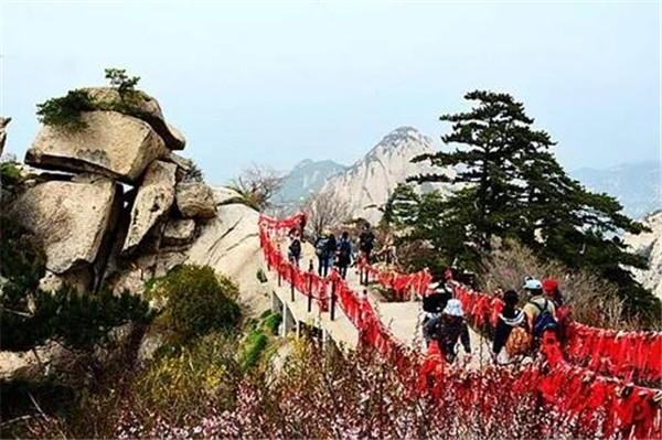魏晉南北朝時,還沒有通向華山峰頂?shù)牡缆?。直到唐朝,隨著道教興盛,道徒開始居山建觀逐漸在北坡沿溪谷而上開鑿了一條險道,形成了"自古華山一條路"。