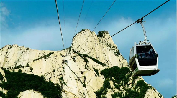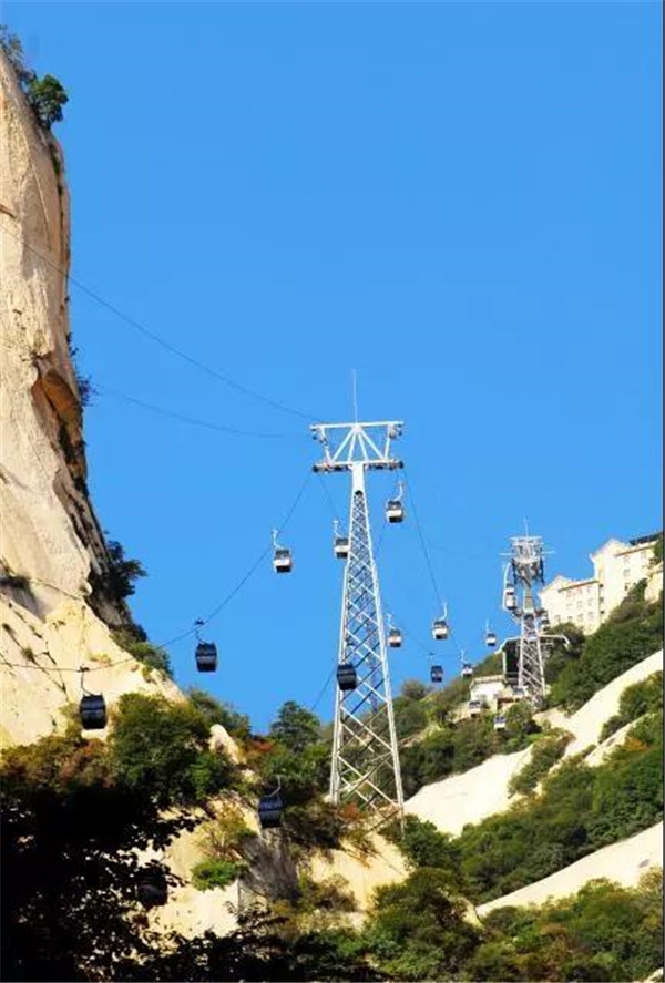 其實,而今作為旅游勝地的華山,已不似古人所記所述,登山道路平整而闊,道旁鐵鏈石欄相護,已無危險之虞,可謂“險而無危”。如今,登頂華山的方式也已經不止步行登山了,索道的建成使更多游人登頂華山的愿望成為現(xiàn)實。