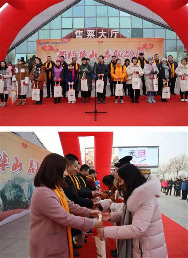 啟動儀式結(jié)束后,華山景區(qū)還設(shè)置了豐富多彩的趣味游戲環(huán)節(jié),以抖音為載體的“歡度元旦 ‘抖’舊迎新”、參與贏獎的“元旦樂翻天 華山嗨起來”等,各式各樣的趣味游戲吸引了游客的踴躍參與,活動現(xiàn)場人氣爆棚、參與熱烈,數(shù)百游客匯聚華山腳下,游美景、領(lǐng)好禮,歡度元旦。同時,現(xiàn)場特設(shè)置“回首華旅大時刻”畫展,邀請全國游客參觀2018華山景區(qū)大事記,共同見證2018華山的輝煌時刻。