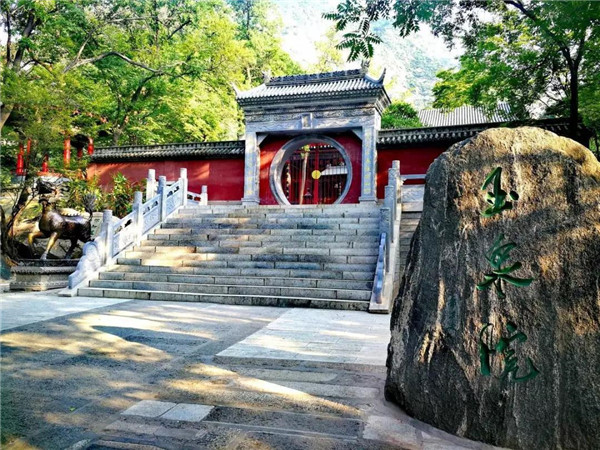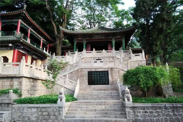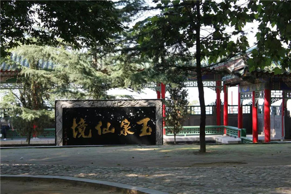 玉泉院的整體布局順應了中國傳統(tǒng)的園林建筑布局風格,“對稱美”的審美觀體現(xiàn)得十分鮮明,整體格局十分嚴道。正門居中,兩側回廊,西北東北兩角各一亭。西院面東有七真殿,東院面西就有華岳圣母殿。西有山蘇亭、希夷睡洞,東有運氣亭、呂祖洞。正殿直對大門,用墻分割為一單體院落,拱門與前院相通、從視覺心理上給人以靜止、穩(wěn)重和居塵出塵之感,體現(xiàn)了道家中規(guī)中矩的“無為”思想和追求完善的審美情趣。