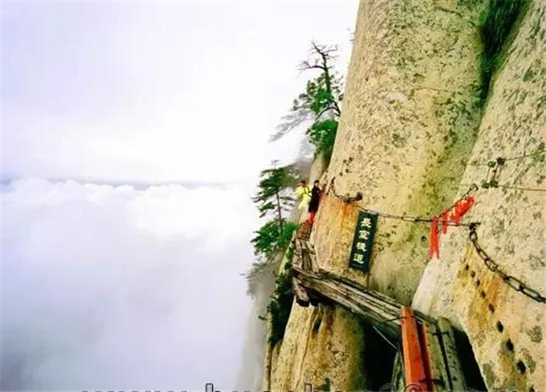 在華山,有一個全世界五大驚險旅游景點之一的地方,叫長空棧道。