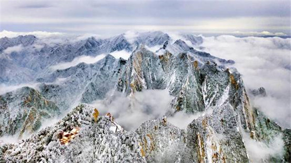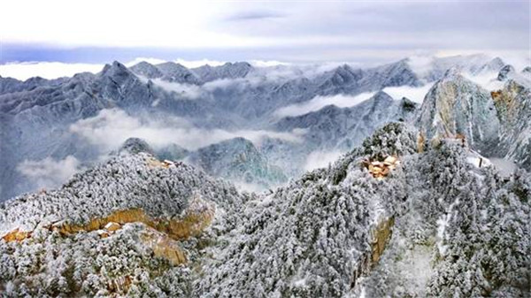 一場(chǎng)大雪將西岳華山變成白雪皚皚的世界,白雪與蒼翠的華山奇松、靈動(dòng)的云海交相輝映,如夢(mèng)如幻;滿山遍野玉樹瓊花,樹枝上通體的霧凇晶瑩剔透,繪就冬日畫境,美不勝收,游人如置身人間仙境。