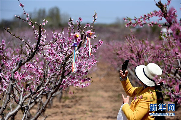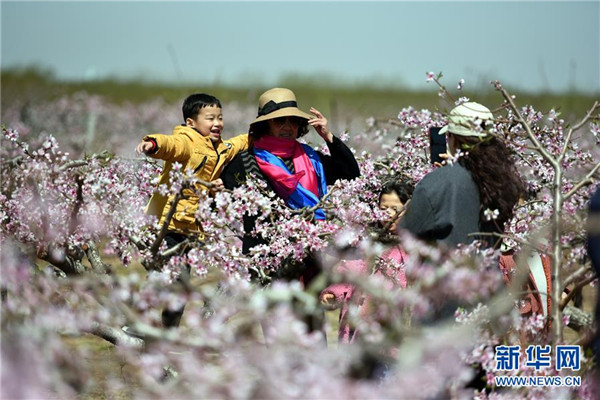 仲春時節(jié),山東省臨沂市郯城縣馬頭鎮(zhèn)“農家花園”里桃花正艷,吸引游客前來踏青賞花。近年來,郯城縣農民通過流轉土地、復耕開發(fā)等形式創(chuàng)辦多個集賞花采摘、旅游觀光、休閑娛樂為一體的花園式農場,帶動當?shù)剜l(xiāng)村旅游發(fā)展。
