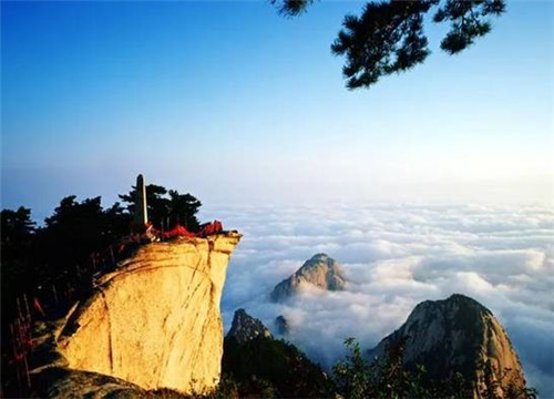登臨華山之巔,“只有天在上,更無(wú)山與齊。舉頭紅日近,回首白云低。”站在華山之上,風(fēng)云際會(huì),秦川茫茫,藍(lán)天如洗。李白有詩(shī)稱贊“西岳嶸嶸何壯哉,黃河如絲天際來(lái)。”