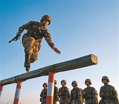 連隊進行400米障礙訓練。