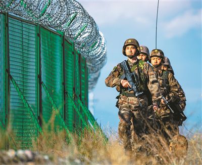 官兵在邊境線上巡邏。