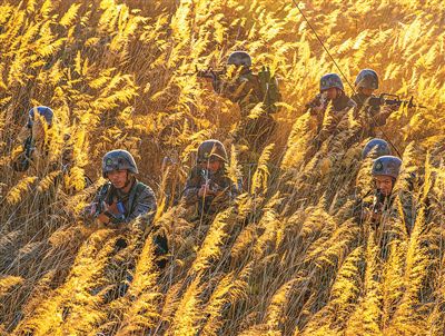 官兵在復雜地域開展戰(zhàn)術(shù)訓練。