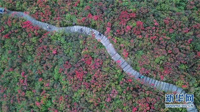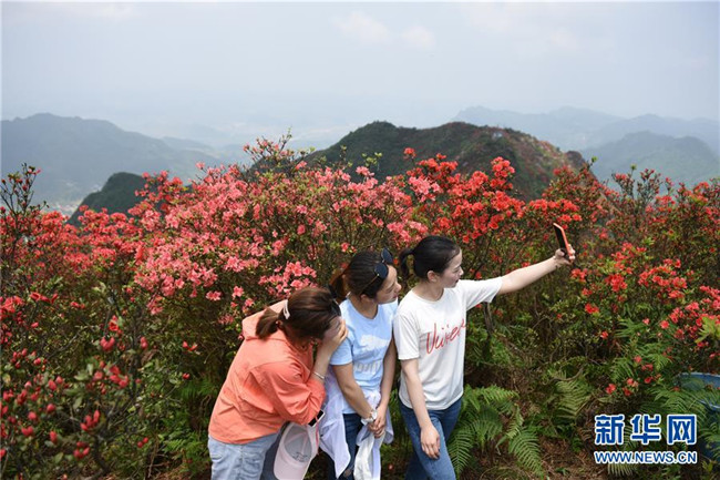 4月25日,游客在貴州省丹寨縣龍泉山景區(qū)觀賞映山紅。暮春時節(jié),位于貴州省黔東南苗族侗族自治州丹寨縣龍泉山景區(qū)的映山紅陸續(xù)開放,紅遍山嶺,吸引眾多游客前來賞花觀光。 新華社記者 楊文斌 攝