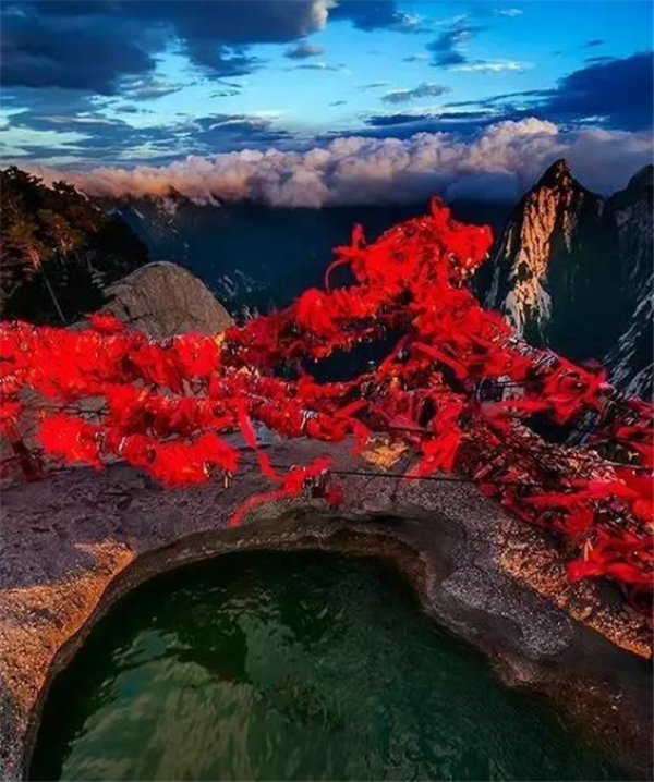 華山是一座奇山,一石成一岳。自然景觀具有非常獨特的個性色彩。華山的石奇,是因為它由一整塊完整的花崗巖構成,經過造山運動形成了千姿百態(tài)的奇峰峭嶺和幽谷險道。華山的路奇,“自古華山一條路”是一道奇觀,這條路或越澗跨溝,或臨崖盤山,或入崖間深谷,或走峭壁嶺脊,或平坦或曲陡,或寬敞或狹窄,曲折變化,跌宕起伏,把人帶入意境深邃的萬般景象之中。華山的水奇,華山的水不以盛見長,而以水景奇觀叫絕。“仰天池”不盈三尺,水深不過尺余,卻澇不溢,旱不涸。華山的樹奇,華山多古樹名木,成千上百年樹齡的古松匯聚成林,奇?zhèn)延^,更奇的是那些長在山腰崖畔,扎根石縫,連理連枝的松樹,像夫妻相擁,兄弟并立,姐妹相望,義士結盟,體現了人文文化的豐富內涵。