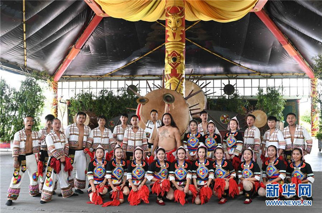 基諾族演員在表演大鼓舞(6月1日攝)。